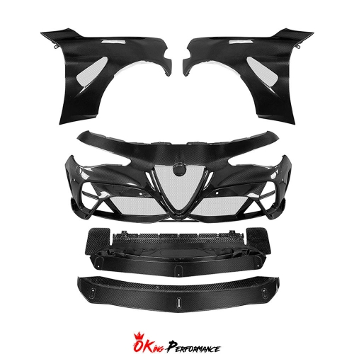 GTAM Widebody Style Dry Carbon Fiber Front Bumper & Fenders For Alfa Romeo Giulia 2016-2023
